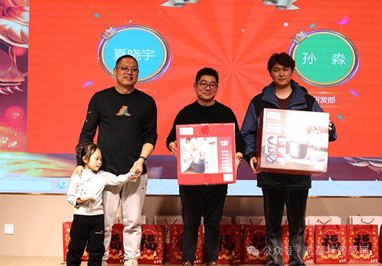 年會現場驚喜禮品接連掉落,互動大屏氣氛嗨翻全場,一輪又一輪激動人心的幸運抽獎,頻頻引爆年會氣氛。空氣炸鍋、松下暖風機、莫比智能橢圓機等各種獎項不斷放送,現場驚喜連連,熱鬧非凡!