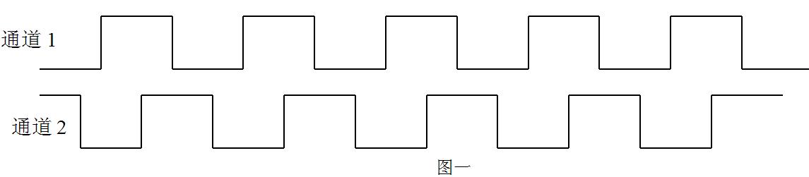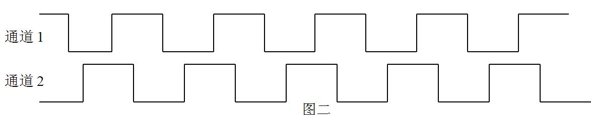 按 本說明書四中應用示例安裝,當旋轉方向如圖四所示定義為正轉,輸出波形為通道1超前通道2 90度,波形示意圖如下所示:
